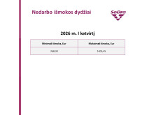 Dėl minimalios mėnesinės algos augimo 2026 metais didės nedarbo išmokos. Nedarbo išmoką sudaro dvi dalys – pastovioji ir kintamoji. Pastoviosios dalies dydis sudaro 23,27 proc. to mėnesio, už kurį mokama išmoka, galiojančios MMA.