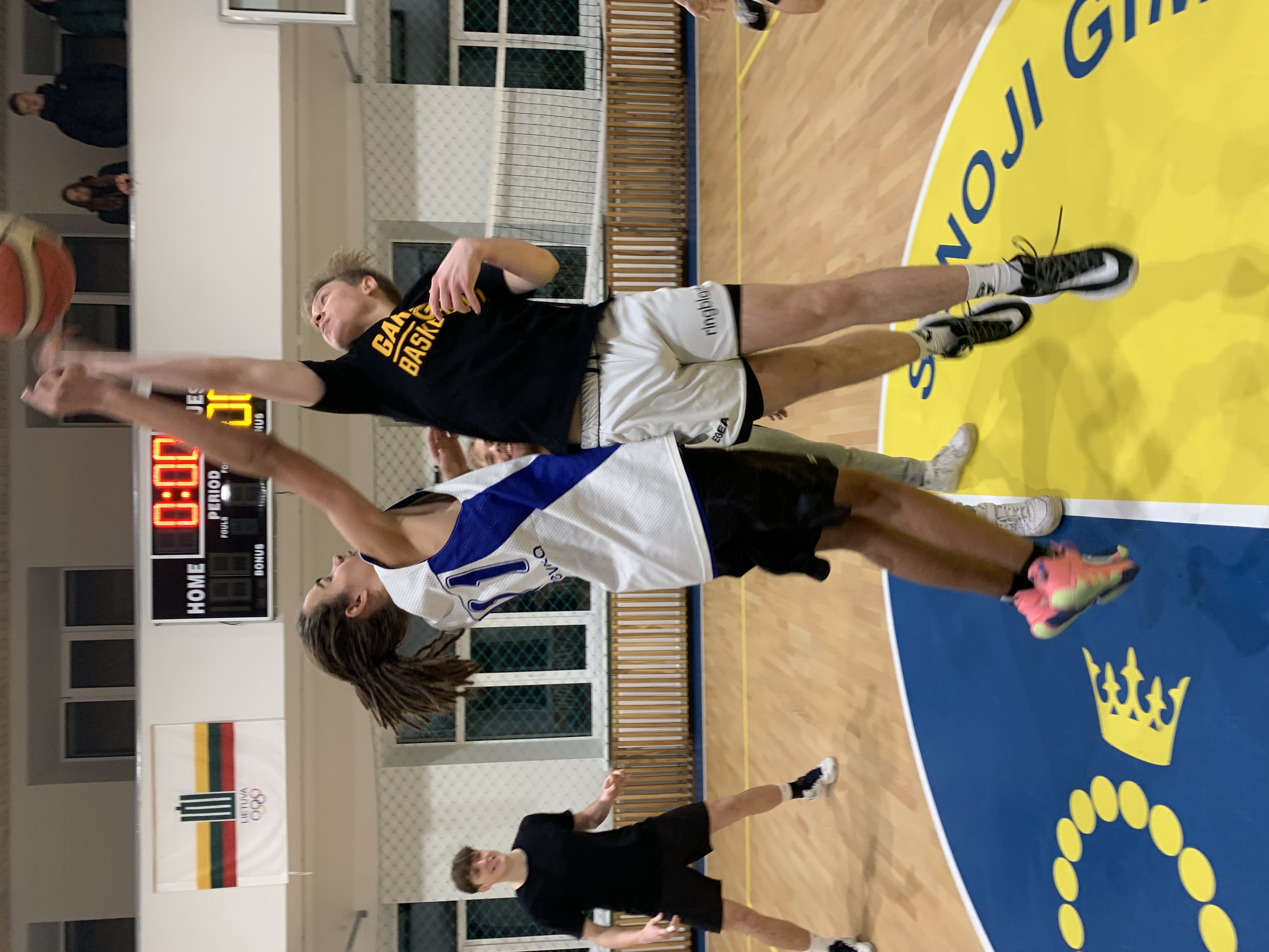 Gruodžio 9 d. gimnazistai rinkosi į „Naktinį krepšinį”. Net aštuonias valandas, nuo 19 iki 3 val nakties, žaidė gimnazistai mėgstamiausią žaidimą Lietuvoje. Startavo 6 komandos. Sužaisti 21 kėlinukai po 10 minučių. Per visą rungtynių laiką surinkta 699 taškų. Teisėjavo 8 teisėjai, sekretoriavo 4 merginos. Visą naktį su muzika varžybas lydėjo jaunasis didžėjus – pirmokas Kristijonas Karačionka.