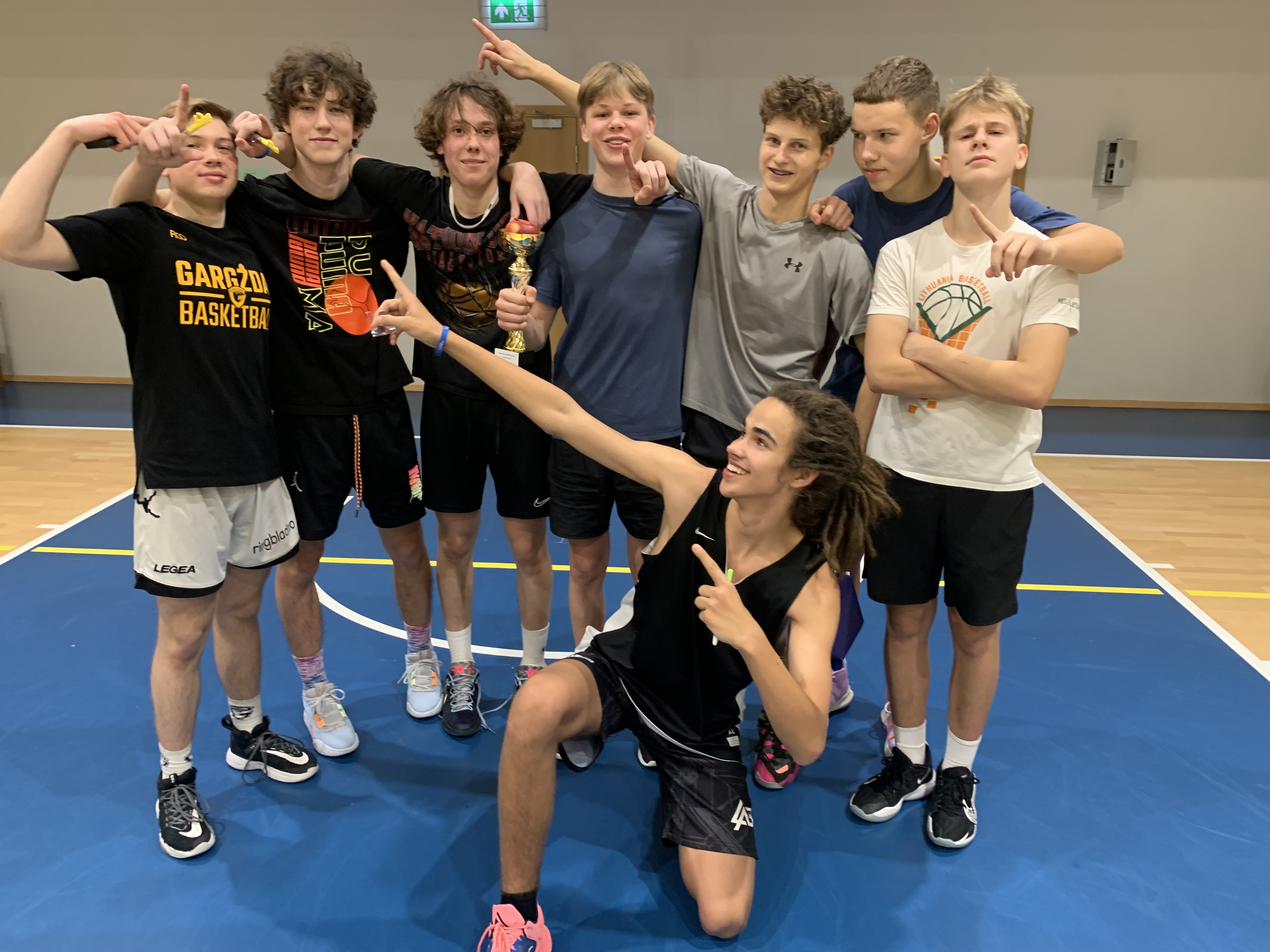 Stebino savo pareigingumu, entuziazmu ir veiklumu šių varžybų organizatoriai – trečiokai Gustas Petrošius, Laurynas Palubinskis, Renatas Daugėla, Kristupas Barauskas. Viskas puikiai organizuota, paruošti apdovanojimai – diplomai, asmeninės dovanėlės, saldieji prizai visoms komandoms. Nepamirštas nei vienas, net sirgaliai. Renatas jiems parūpino sirgalių atributikos – dūdų.