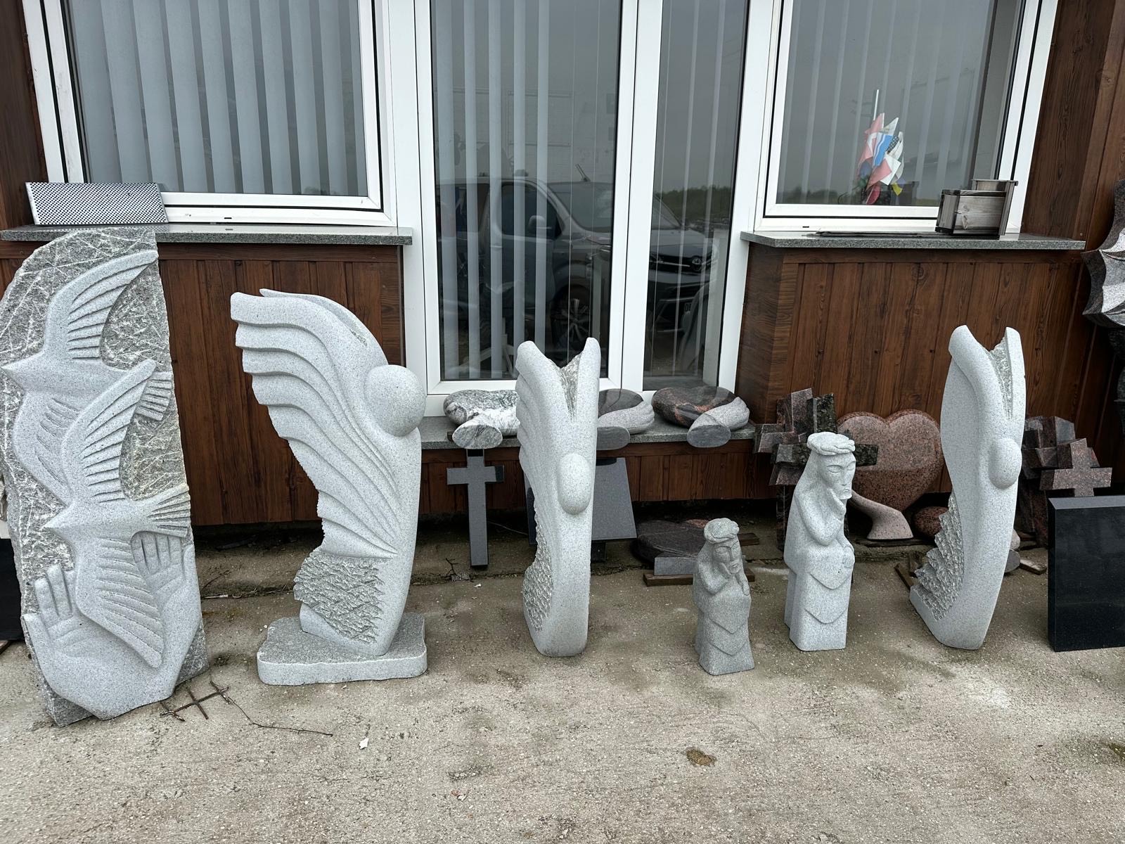 Pas mus – ne tik gamyba. Mūsų teritorijoje rasite didelę ekspoziciją jau pagamintų paminklų, įvairių spalvų, formų ir dydžių. Taip pat – platus granito plokščių pasirinkimas, skirtas dengti kapavietes. Galite rinktis gyvai, paliesti, suderinti.