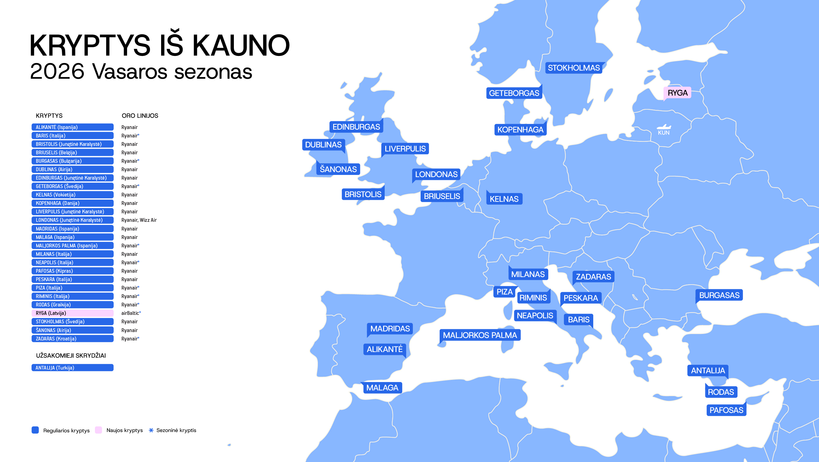 Kaune – jau patikrintos kryptys ir į Pietų Europą viliojantys pasiūlymai