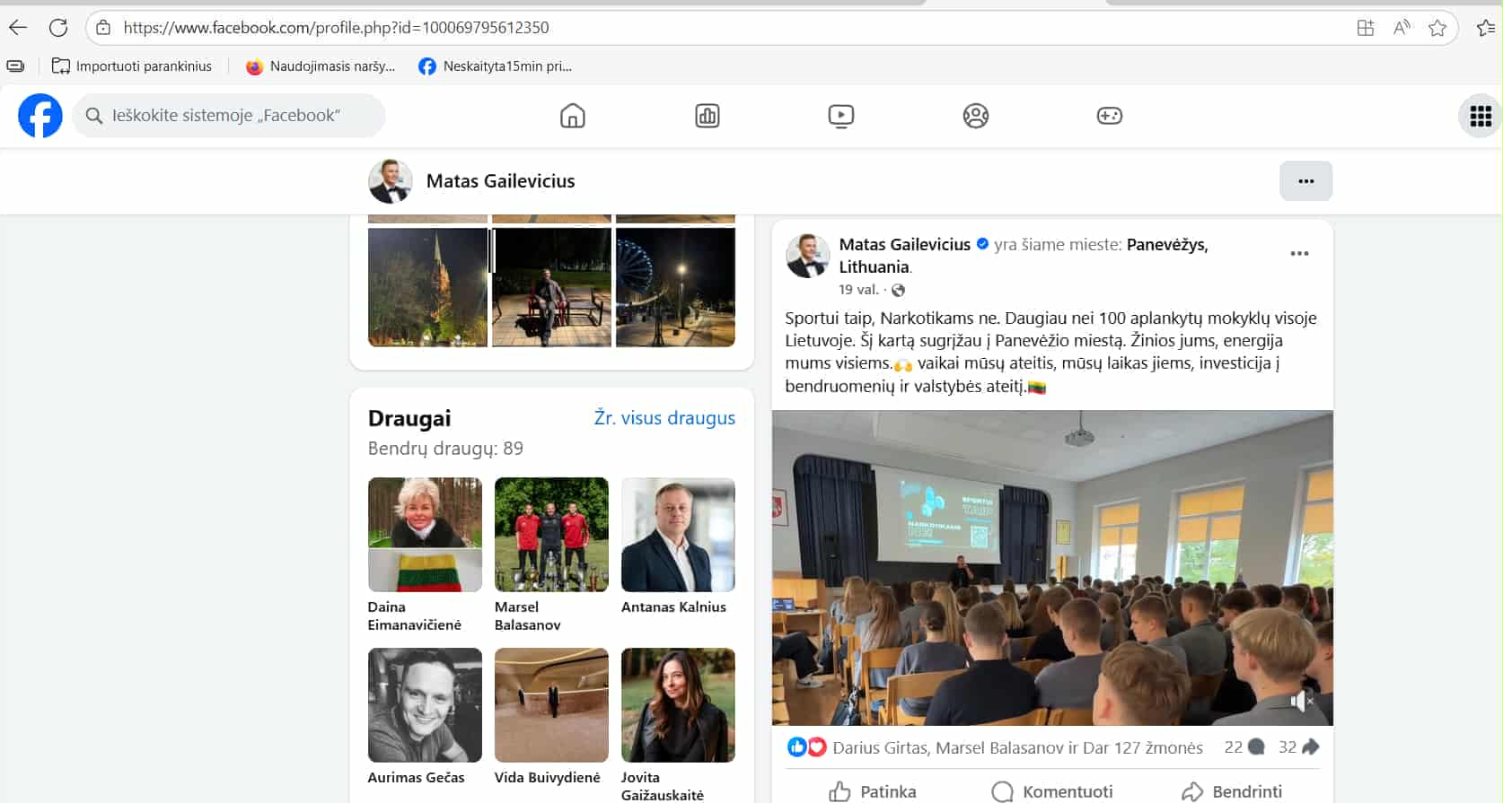 Paskaitą „Sportui – taip, narkotikams – ne“ 2023 metų pabaigoje M. Gailevičius Palangos Vlado Jurgučio progimnazijoje skaitė dar be reputacijos dėmių.