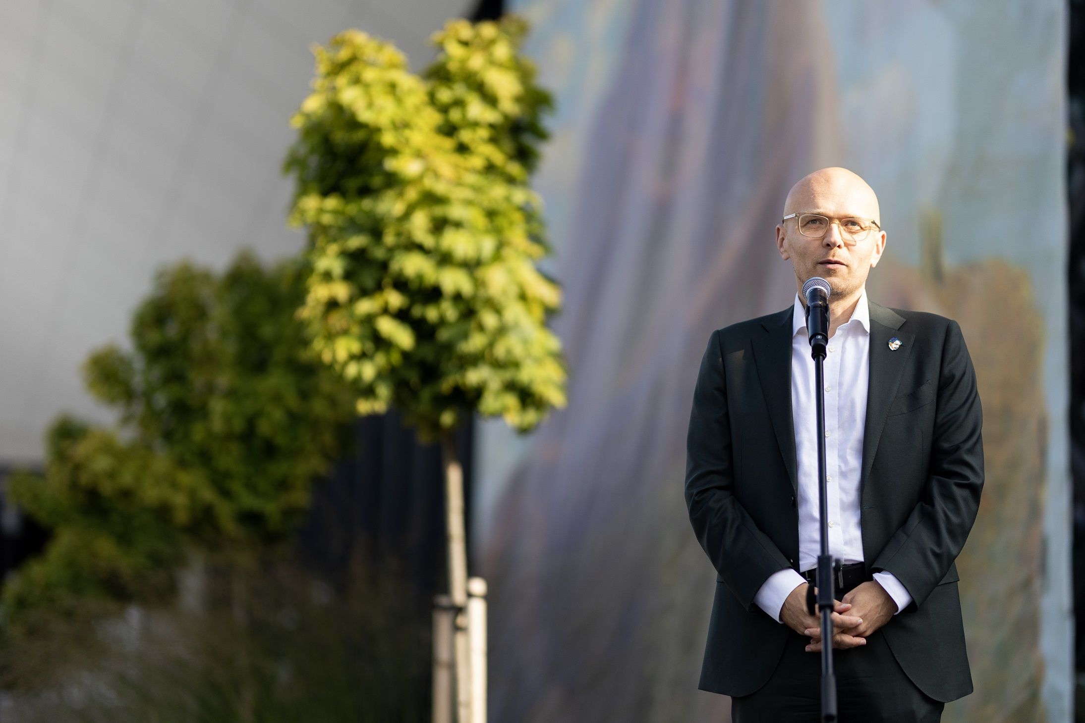„Vilniuje galime rasti ne vieną Mikalojų Konstantiną Čiurlionį menantį ženklą: gatvę, stotelę, mokyklą, namus. Pastaruosius metus Čiurlionio muziką girdime tiek koncertų salėse, tiek kamerinėse erdvėse, aplink vis atsikartoja Čiurlionio paveikslų motyvai, kuriami virtualios realybės filmai. Visą savaitę sostinėje viešinčios pasaulio fortepijono žvaigždės sveikino ir sveikina Čiurlionį, atlikdamos jo kūrinius. Ant Tauro kalno kyla Nacionalinė koncertų salė – Tautos namai, apie kurių atsiradimą, kiek daugiau nei prieš 100 metų svajojo pats Čiurlionis. Šiandien, švęsdami 150-ąjį Čiurlionio gimtadienį, norime, jog apie jį žinotų ne tik čia gyvenantys, bet ir į sostinę iš įvairiausių pasaulio vietų atvykstantys žmonės. Sunku įsivaizduoti geresnę pažinties vietą nei oro uostas, kurį paženklino Čiurlionio parašas“, - teigia Vilniaus miesto meras Valdas Benkunskas.